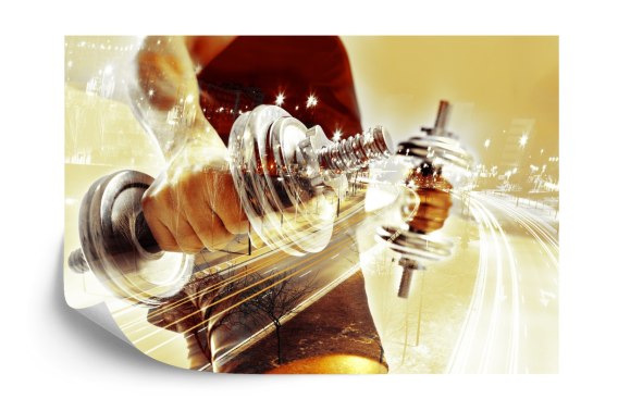 Fototapeta Kolaż Ze Sportowcem I Miastem Nocą Vinyl Gładki 152.5x104 FT-3958-VGL