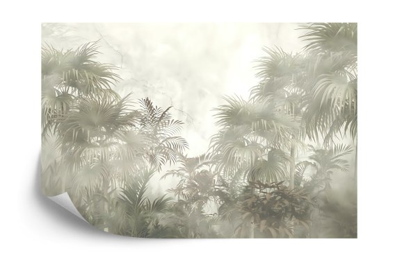 Fototapeta Tropical Trees And Leaves In Foggy Forest Wallpaper Design - 3D Vinyl Gładki 405x270 FT-448496-VG405-270