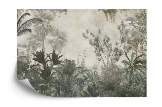 Fototapeta Tropical Trees And Leaves Wallpaper Design In Foggy Forest - 3D Tapeta Samoprzylepna 416x254 FT-448525-SKXXXL