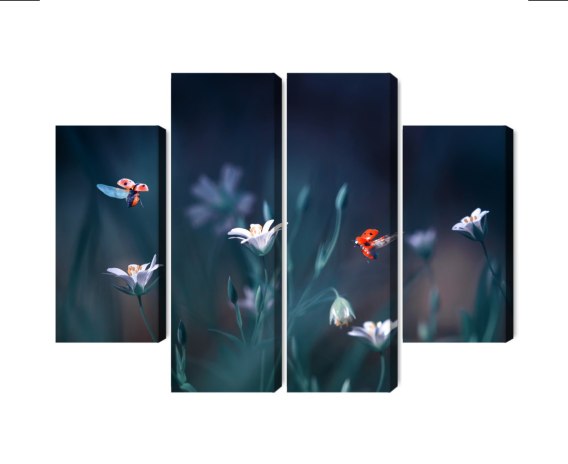 Obraz Wieloczęściowy Biedronki I Polne Kwiaty W Skali Makro Canvas Naturalny 200x150 LBS-3946-NC200-150_2X50-150_2X50-100