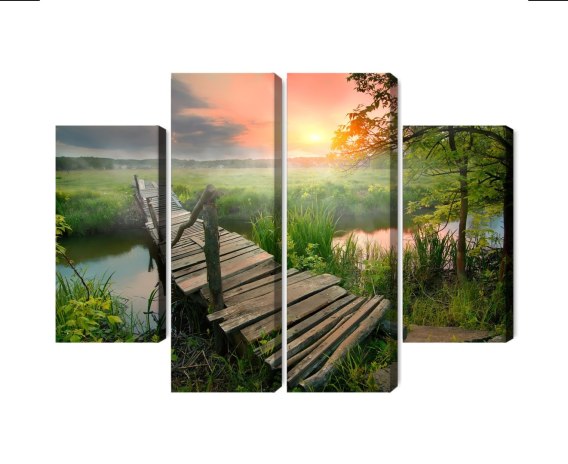 Obraz Wieloczęściowy Łąka O Świcie Canvas Naturalny 80x60 LBS-4640-NC80-60_2X20-60_2X20-40