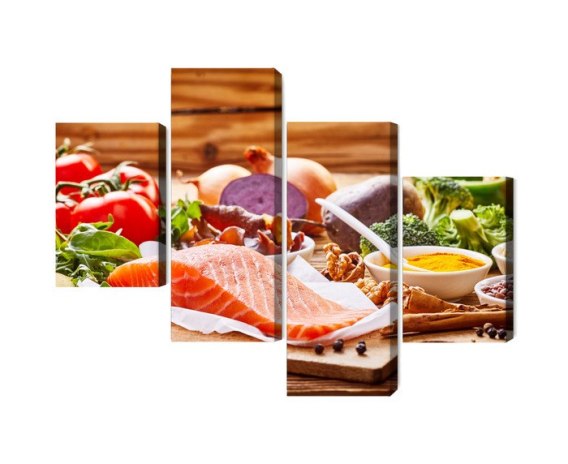 • Obraz Wieloczęściowy Łosoś Wśród Warzyw Canvas 120x75 LBS-2968-C120-75_2X30-75_2X30-45