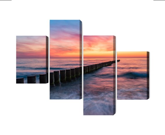 Obraz Wieloczęściowy Morze Bałtyckie Z Drewnianymi Falochronami Canvas 120x75 LBS-2167-C120-75_2X30-75_2X30-45
