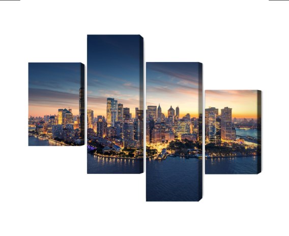 Obraz Wieloczęściowy Panorama Nowego Jorku O Wschodzie Słońca Canvas Naturalny 80x50 LBS-2563-NC80-50_2X20-50_2X20-30