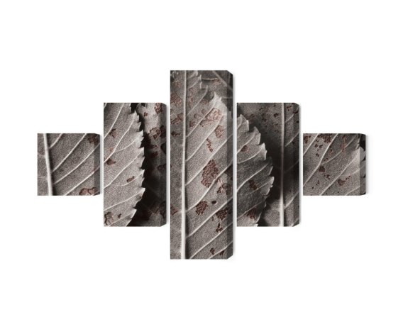 Obraz Wieloczęściowy Szare Liście W Skali Makro Canvas Naturalny 250x150 LBS-3867-NC250-150_1X50-150_2X50-100_2X50-50