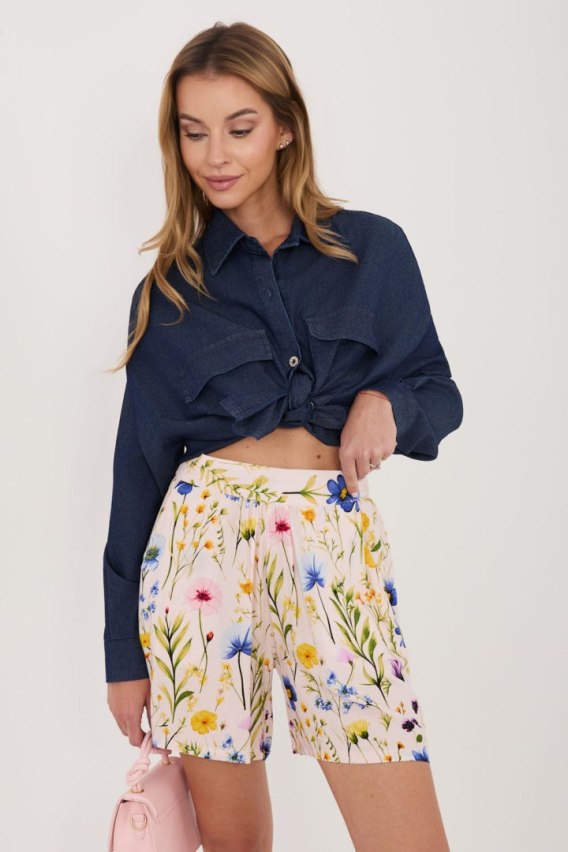 Lekkie i stylowe szorty damskie to idealna propozycja na codzienne stylizacje w cieplejsze dni. Wykonane z przewiewnej wiskozy, zapewniają komfort noszenia, miękkość oraz przyjemne uczucie na skórze przez cały dzień. Model posiada krótkie, proste nogawki, które gwarantują swobodę ruchów i uniwersalny wygląd. Z tyłu w pasie wszyta elastyczna guma umożliwia idealne dopasowanie do sylwetki, jednocześnie zapewniając wygodę użytkowania bez konieczności zapinania. Szorty dostępne są w różnych wariantach, z nadrukiem w ciekawy wzór lub w kwiaty, w zależności od wybranego modelu. Dzięki temu możesz dopasować je do swojego stylu, od bardziej nowoczesnego po romantyczny. Dodatkowym atutem są praktyczne, boczne kieszenie wsuwane. To doskonały wybór na co dzień ,świetnie sprawdzą się podczas spacerów, wyjazdów czy letnich spotkań, tworząc modne i wygodne zestawy.