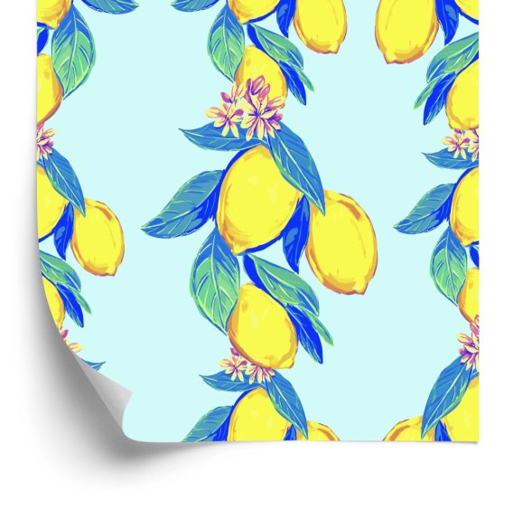 Tapeta Cytryny Z Liśćmi I Kwiatami