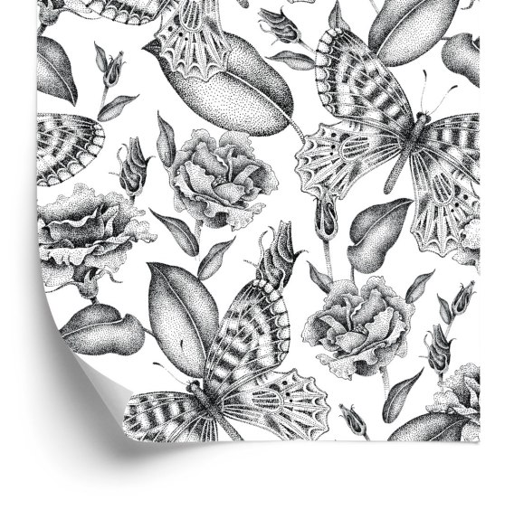 Tapeta Czarno-Białe Róże Z Motylami Flizelina 53x1000 TR-3702-VER-53