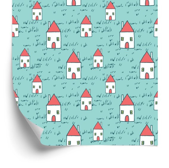 Tapeta Dla Dzieci - Domki Z Czerwonymi Daszkami Flizelina 53x1000 TR-376-VER-53