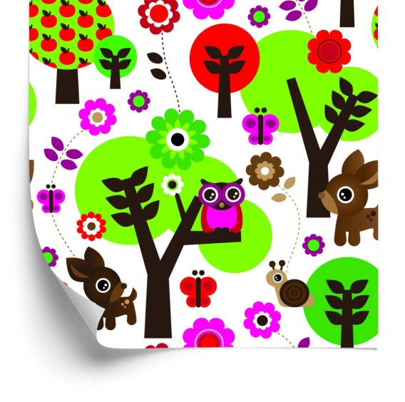 Tapeta Dla Dzieci - Leśne Zwierzątka, Kolorowe Kwiaty I Drzewa Flizelina 53x1000 TR-1051-VER-53