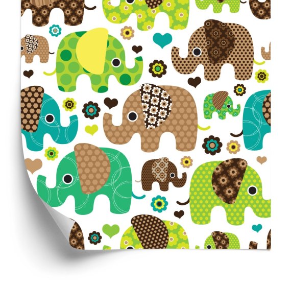 Tapeta Dla Dzieci Słonie Zwierzęta Kwiaty Serca Flizelina 53x1000 TR-3598-VER-53