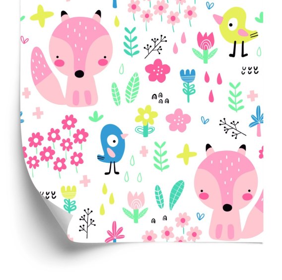 Tapeta Dla Dzieci - Wesołe Liski I Ptaszki Flizelina 53x1000 TR-887-VER-53