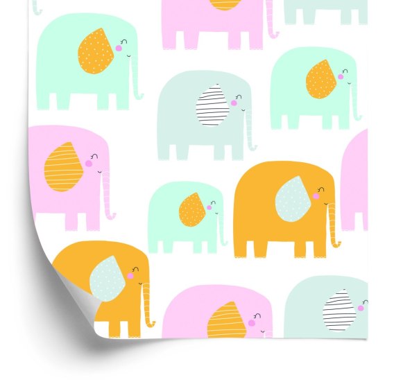 • Tapeta Dla Dzieci - Wesołe Słoniki W Pastelowych Barwach