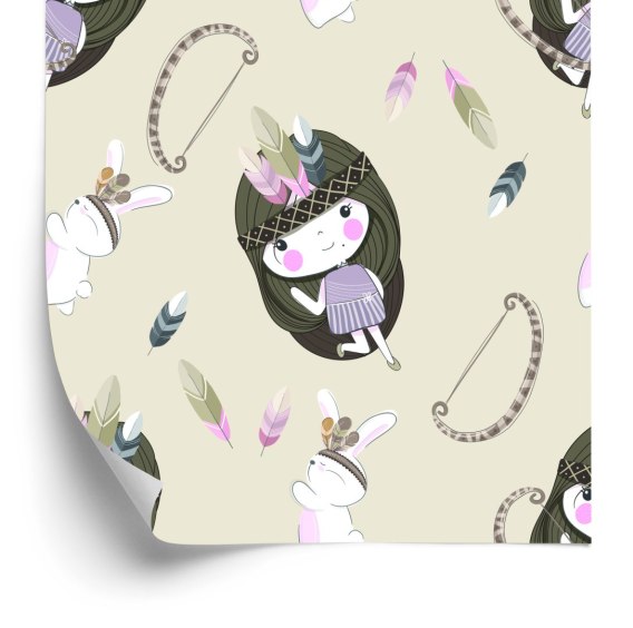 Tapeta Dziewczynki Z Króliczkami I Piórkami Flizelina 53x1000 TR-5269-VER-53