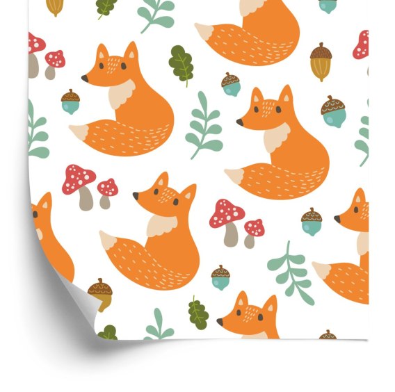 Tapeta Minimalistyczne Lisy Z Liśćmi Flizelina 53x1000 TR-4010-VER-53