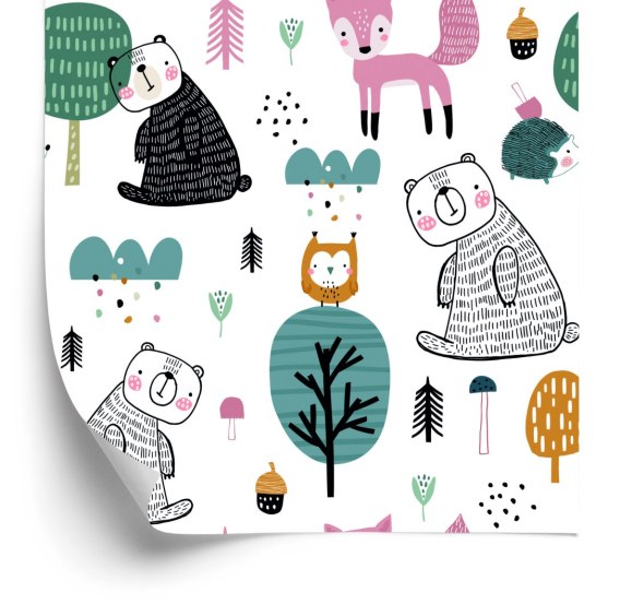Tapeta Misie I Sowy W Lesie Flizelina 53x1000 TR-4041-VER-53