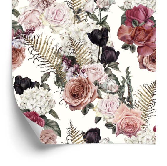 • Tapeta Róże Z Liśćmi Paproci Flizelina 53x1000 TR-3429-VER-53