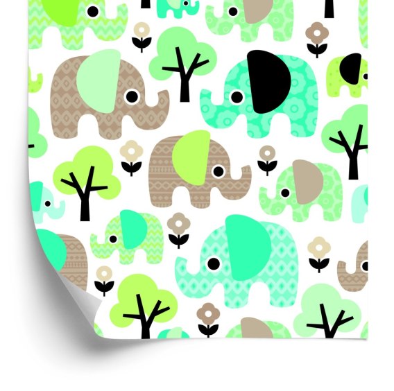 Tapeta Słonie Kwiaty Drzewa Zieleń Pokój Chłopca