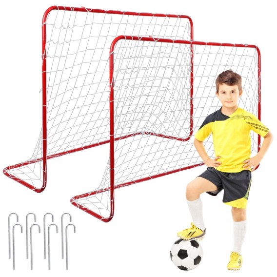 Zawartość zestawu: dwie bramki, siatki piłkarskie, szpilki mocujące 8 szt., instrukcja w języku polskim.